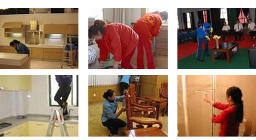 7、地角線保潔:用濕毛巾全面擦拭,著重處理沒有清潔掉的漆點,再用干毛巾擦拭后分材質(zhì)而噴上家私蠟。 |